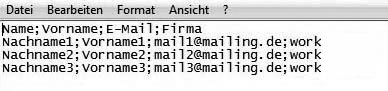 Maybe you have already collected email addresses to which you want to send a newsletter. No matter in which database these information are stored – you only need to save them in a CSV file (for example with Excel) and import them Chili-Newsletter-Software. You can pack your CSV file as a zip to accelerate the uploading of large files. That's how it works:In the first line of the table, there should be field names – first name, surname, email address etc. An example: |